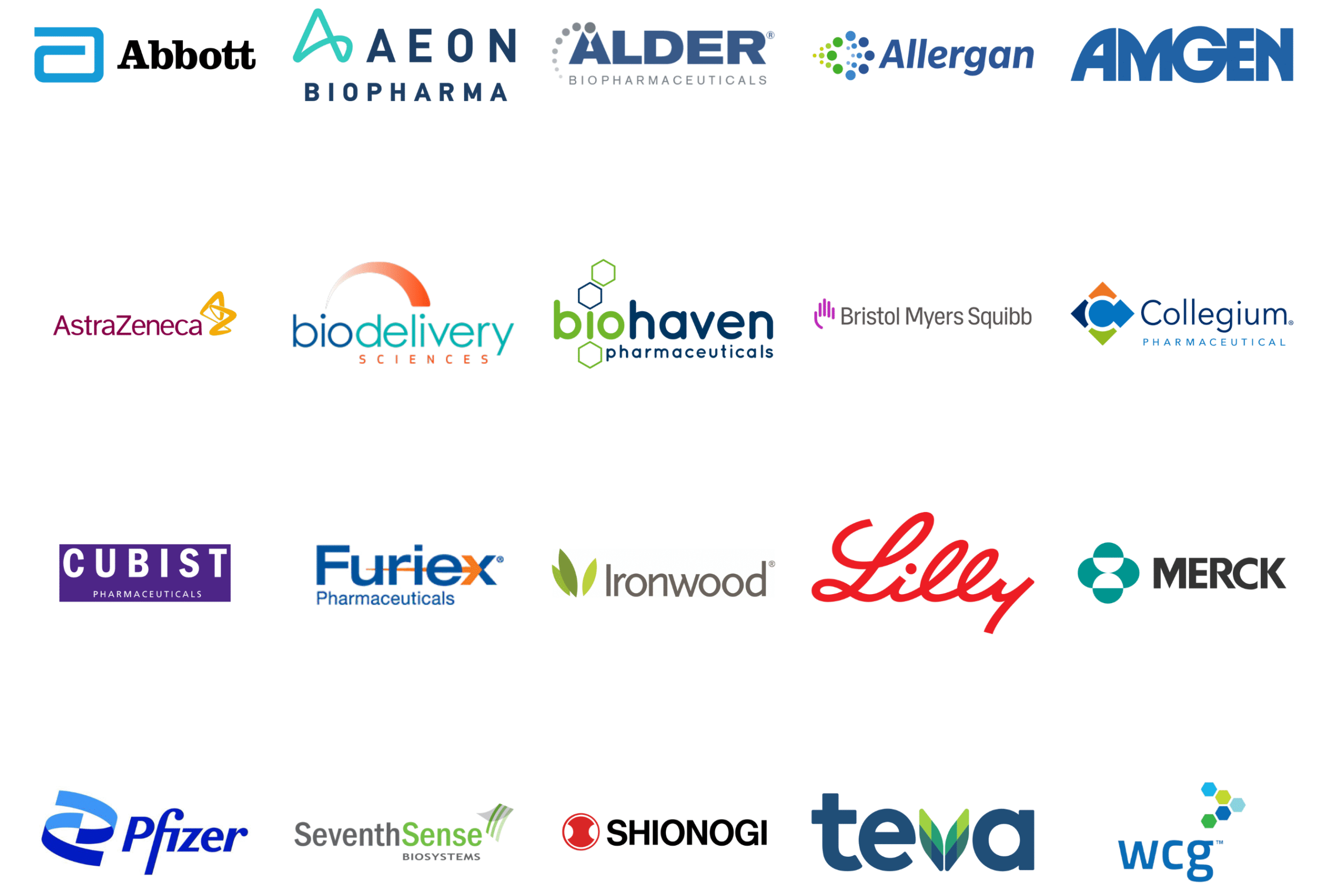 MedVadis works with renowned pharmaceutical companies, big and small. We’ve helped launch over 30 medications, including Imitrex®, Zomig®, Botox®, Topamax®, Amitiza®, and Nucynta®. The clinical research trials we undertake for each clinical trial are reviewed and approved by the Food and Drug Administration (FDA) as well as by Institutional Review Boards (IRBs). These are just some of the many companies we have worked with since our inception in 1996.